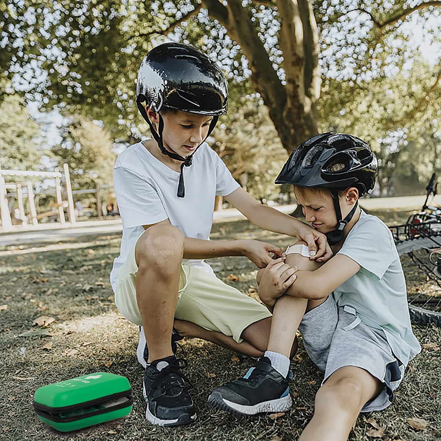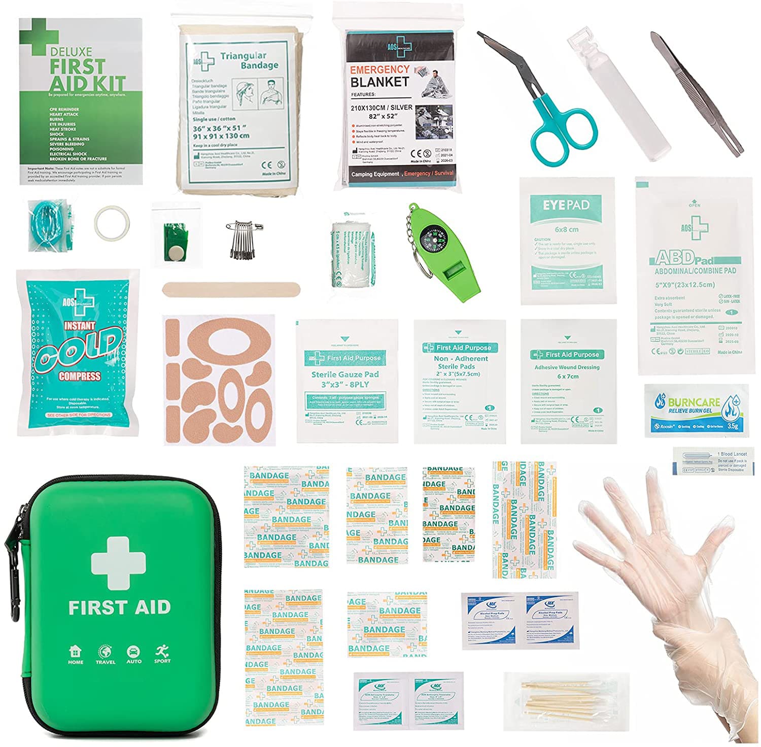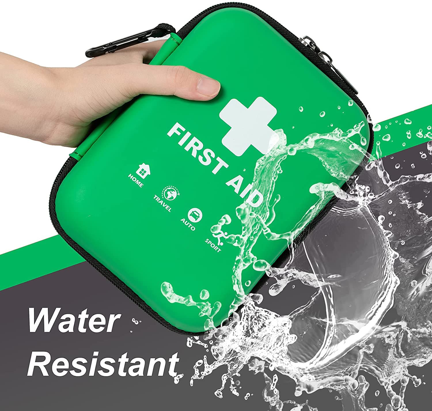 Uwendung vum Green Hard EVA Éischt Hëllef Kit: Equipéiert Äert Heem, Bürosauto, Campingberäich a méi mat dësem Deluxe Éischt Hëllef Kit.