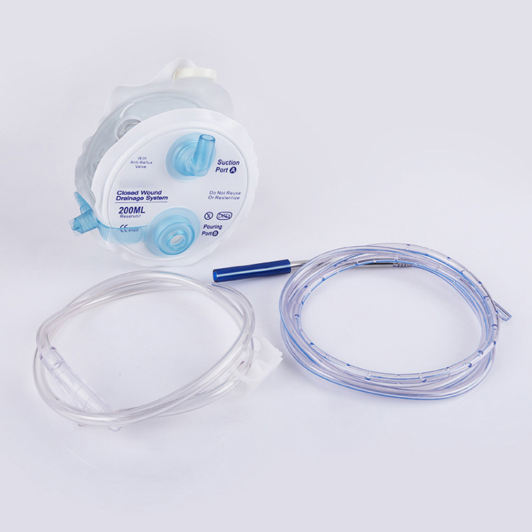 Wound Drainage Ausrüstung: Allgemeng aus Silikongummi oder Polyurethan an aner Materialien. Wann Dir benotzt, gëtt een Enn vum Katheter an de Kierper oder d'Drainageplaz vun der Wonn agebaut, an deen aneren Enn kann mat der Drainagedüse an aner extern Instrumenter ausserhalb vum Kierper verbonne sinn, an de Katheter gëtt ausserhalb vum Kierper duerch intern drainéiert. Drock, Schwéierkraaft oder negativ Drock Attraktioun. Steril, disposabel. Benotzt fir Effusioun, Exsudat oder Gas vum Patient no baussen vum Kierper ze drainéieren. De gemeinsame thoracic Drainage Katheter, ventricular Drainage Katheter, cerebrospinal Flëssegket externen Drainage Katheter, lumbar externen Drainage Katheter, craniocerebral externen Drainage Katheter, abdominal Drainage Rouer, thoracic Drainage Rouer, ventricular Drainage Rouer, Bile duct Drainage Rouer, Bile duct Drainage Rouer an sou Drainage Rouer.